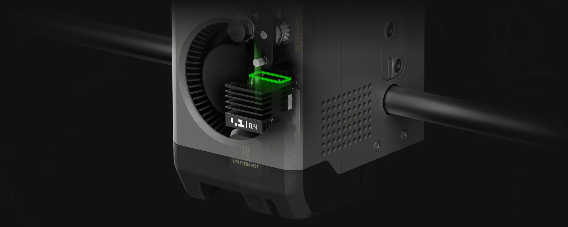 - Усиленный экструдер справляется с высоким сопротивлением, это важно при работе на больших скоростях и с вязкими материалами.