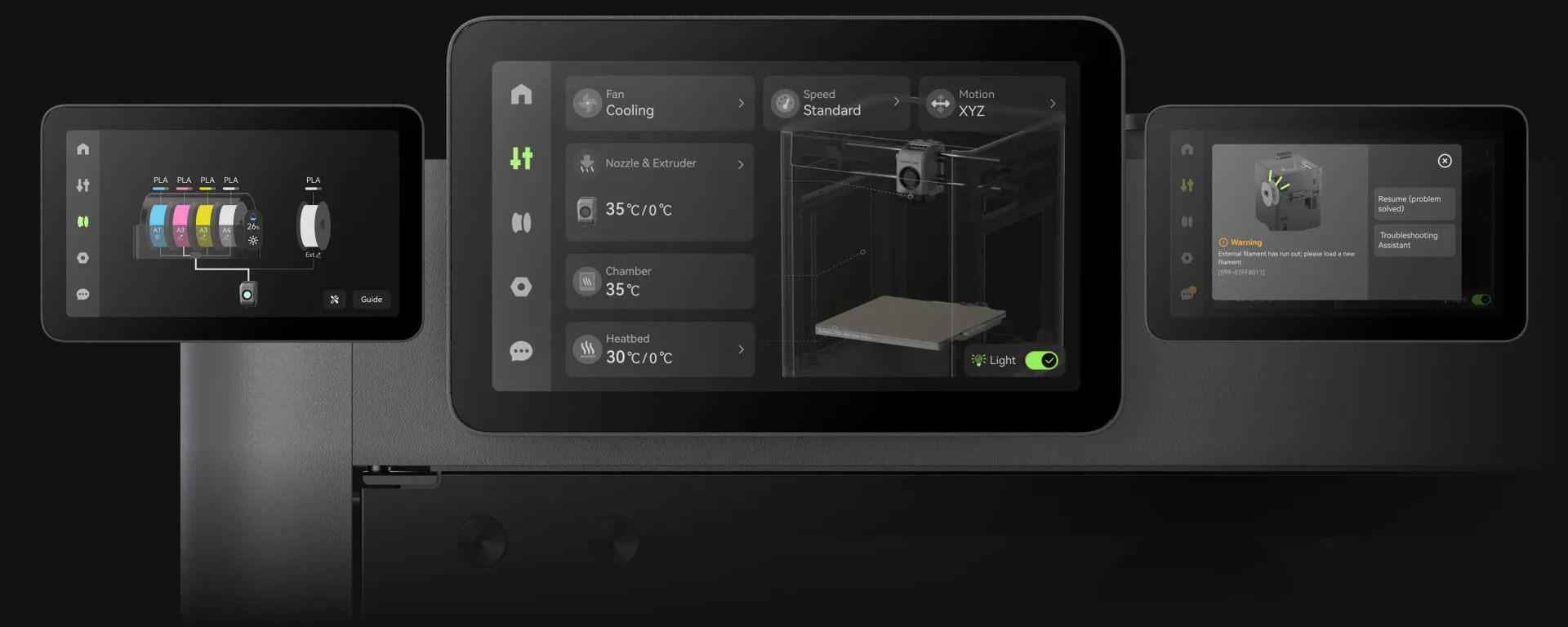 | Материалы | PLA, PETG, ABS, ASA, TPU, Support for PLA, Support for PLA/PETG, Support for ABS, PET, PA, PC, PVA, PLA-CF, PETG-CF, ABS-GF, ASA-CF, PA6-CF, PA6-GF, PAHT-CF, PPA-CF, PET-CF |