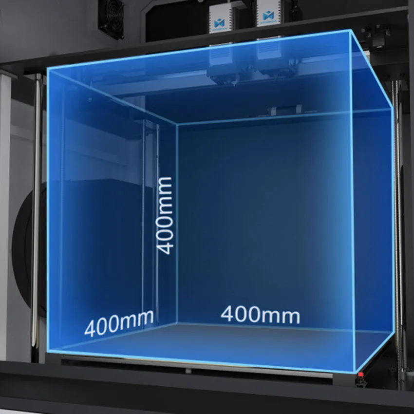 Система автоматической калибровки существенно повышает эффективность работы и обеспечивает высокую точность. 3D-принтер MINGDA MD-400D позволяет печатать образцы размером: 400 мм*400 мм*400 мм. Полностью закрытая камера обеспечивает стабильную температуру во время процесса печати. Платформа PEI обладает хорошей адгезией, благодаря чему модели не деформируются в процессе печати и легко снимаются после остывания. Система фильтрации воздуха эффективно удаляет мельчайшие частицы и запахи. MD-400D оснащён функцией автоматического восстановления печати после отключения питания и 7-дюймовым IPS-дисплеем высокого разрешения.