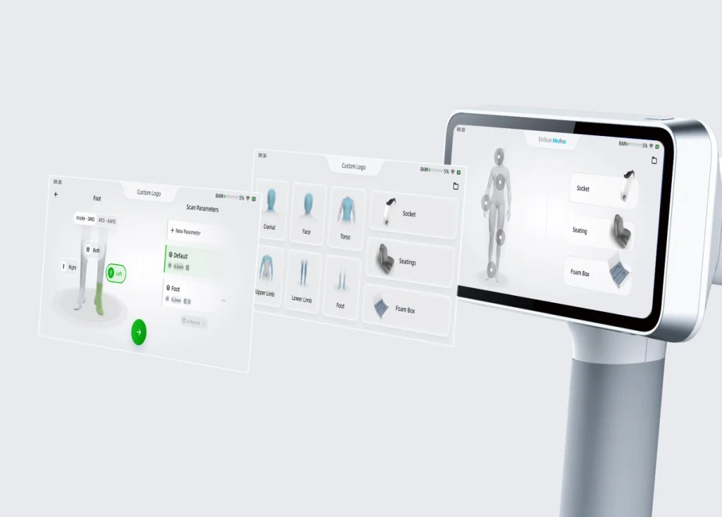 3D-сканер Shining 3D EinScan Medixa- беспроводной многофункциональный 3D-сканер, специально разработанный для работы с ортезами и протезами, объединяет упрощённые рабочие процессы и встроенную систему обработки данных, исключающую необходимость в подключении внешнего компьютера. Бесконтактный полностью цифровой метод позволяет специалистам в области ортопедии и протезирования оказывать помощь пациентам быстрее, точнее и удобнее.