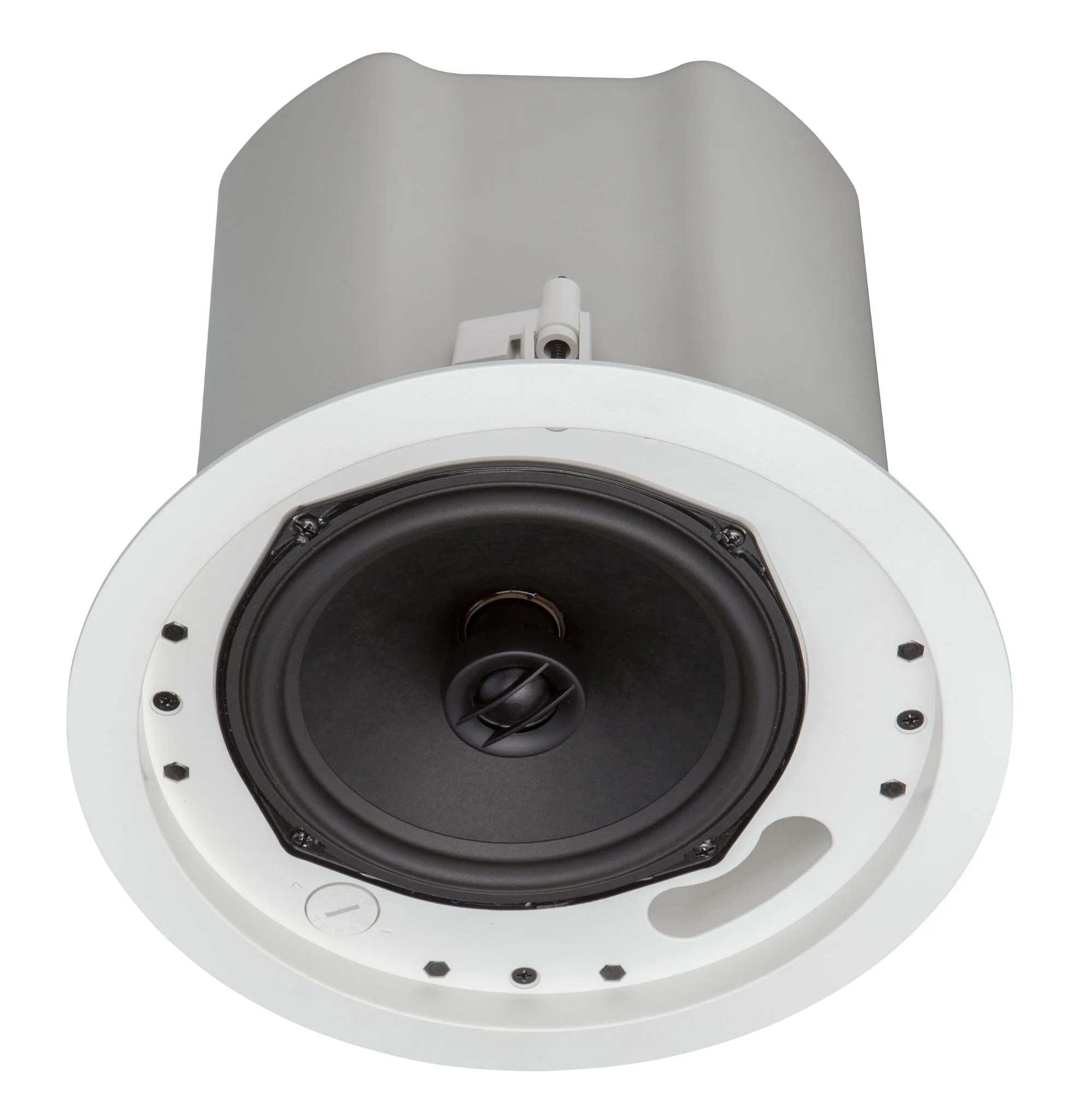 Двухполосный потолочный динамик с 6,5-дюймовым вуфером и купольным твитером 3/4 дюйма. Гарантирует быструю установку и надежную работу, подходит для ресторанов, торговых помещений, конференц-залов, аэропортов и офисных зданий.