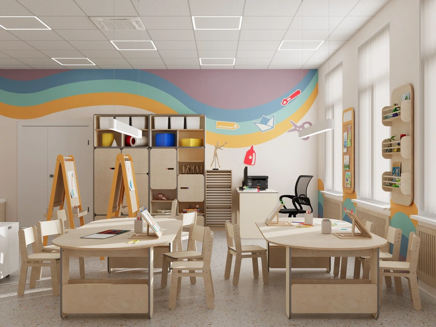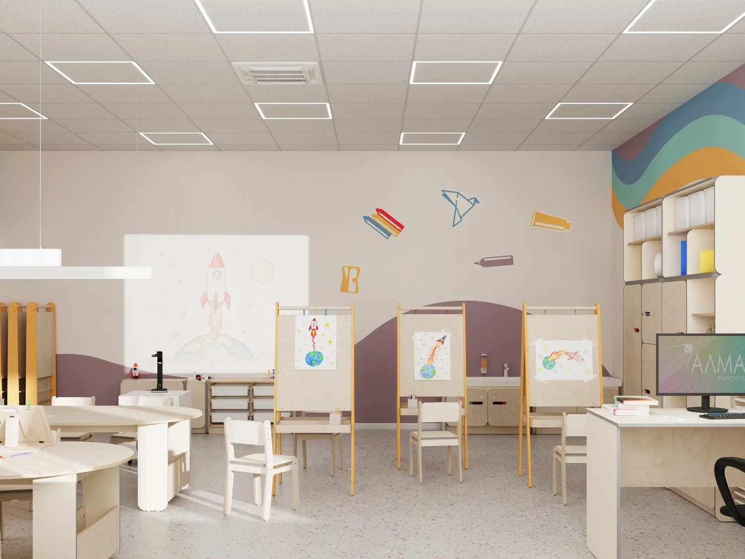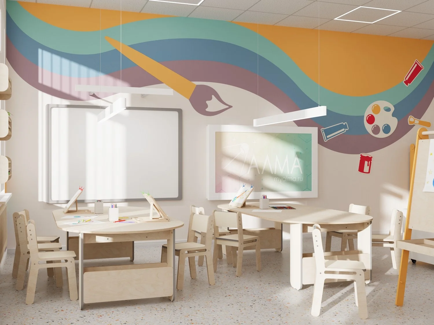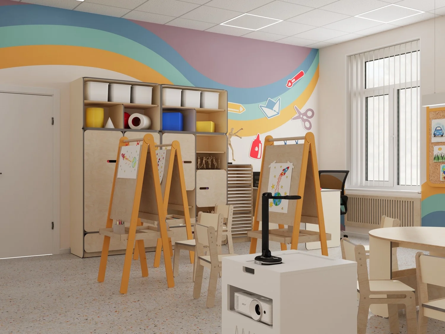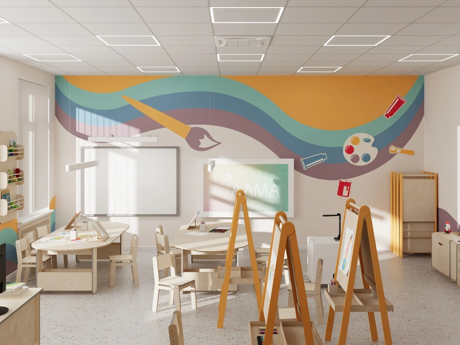 Студия изобразительного искусства площадью 43 м² — это готовое решение для организации учебного пространства, оснащённого современными средствами для занятий живописью, графикой и другими видами изобразительного творчества. Пространство спроектировано с учётом требований безопасности, эргономики и методических рекомендаций, а также обеспечивает комфортные условия для индивидуальной и групповой работы.