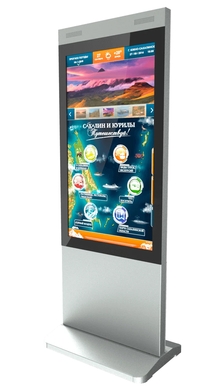 Стильный дизайн будет притягивать взгляды: установите информационный терминал в выставочном комплексе, на ресепшене гостиницы или бизнес-центра, в государственном, образовательном, медицинском учреждении, торговом центре и т. д.