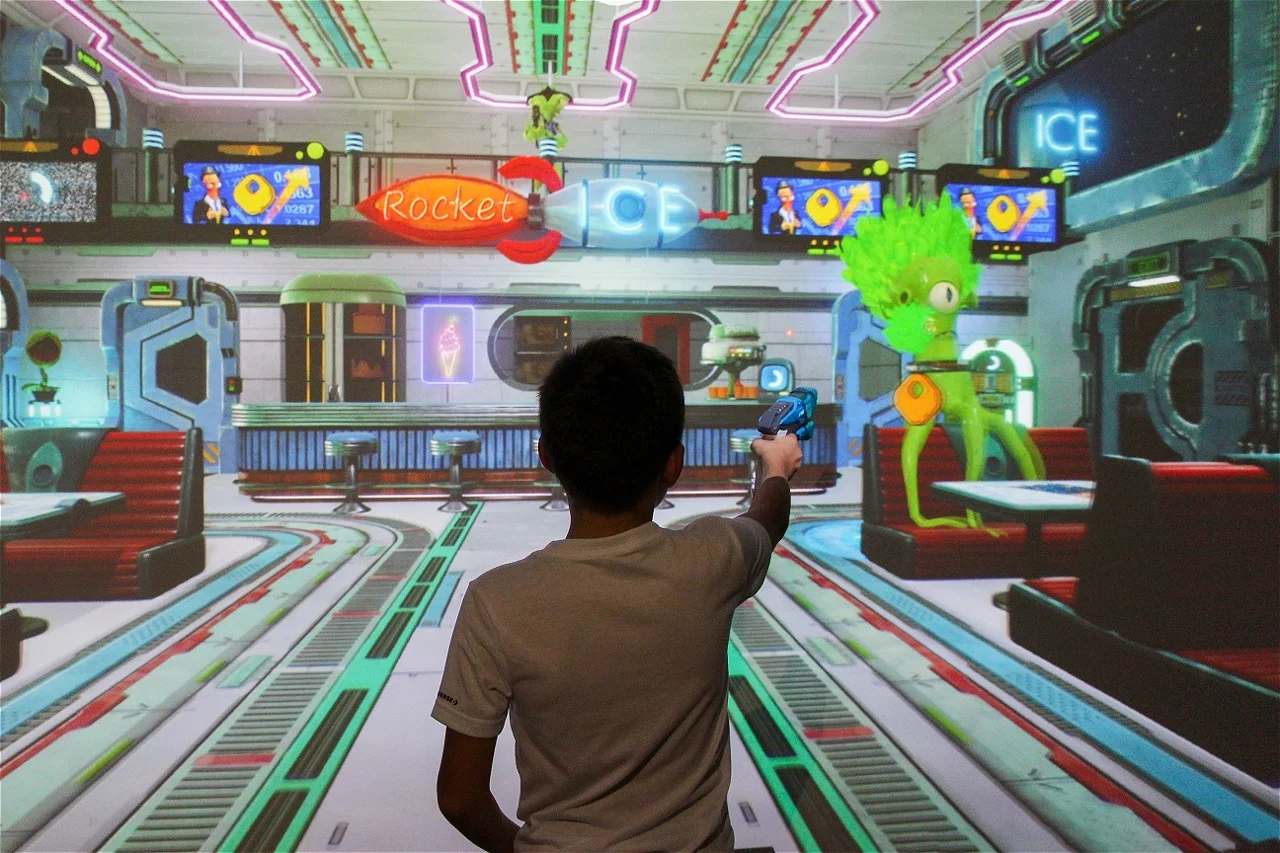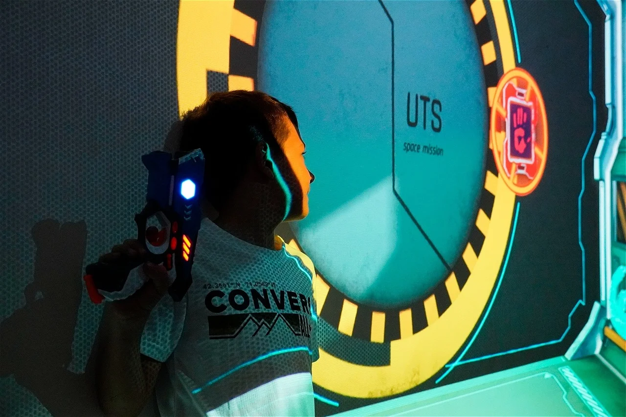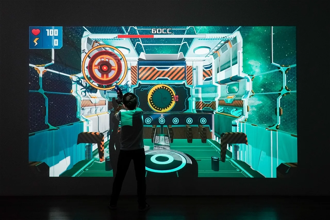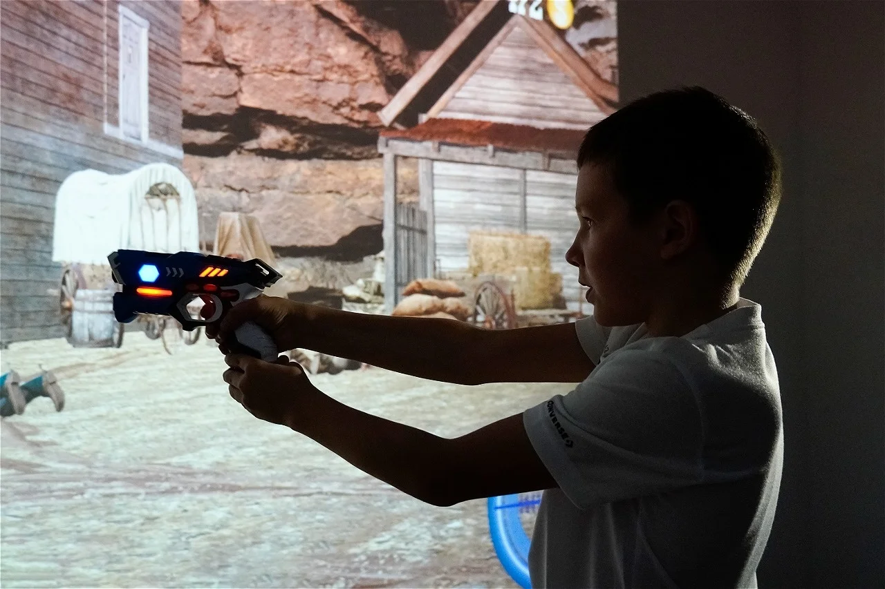 Интерактивный тир LaserGun превращает обычную стену в захватывающее поле боя. Участники игры учатся метко стрелять из лазерных пистолетов по различным мишеням. LaserGun помогает развивать координацию, глазомер, внимание, скорость реакции, моторику и стратегическое мышление. Площадь интерактивной проекции до 14 м², одновременно могут играть до 10 детей.