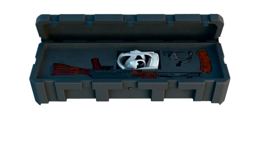 Набор «ПАК VR-тир» включает программное обеспечение виртуального стрелкового тира, автономный VR шлем PolyVR 6 DoF, макет автомата АК-74М (ММГ) и защитный кейс для хранения и транспортировки. Это современное решение для военного и патриотического воспитания, разработанное с использованием технологий виртуальной реальности (VR) и специального адаптера для синхронизации VR-оборудования с ММГ.
