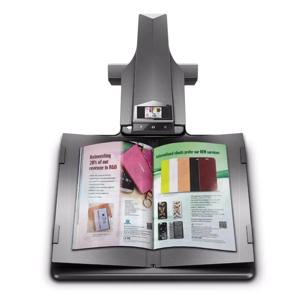 CZUR M3000 Pro – профессиональный настольный книжный сканер с V-образной колыбелью, построенный на базе цифровой камеры высокого разрешения. Наличие книжной колыбели позволяет осуществлять сканирование разворотов книг и сброшюрованных документов под различными углами раскрытия.