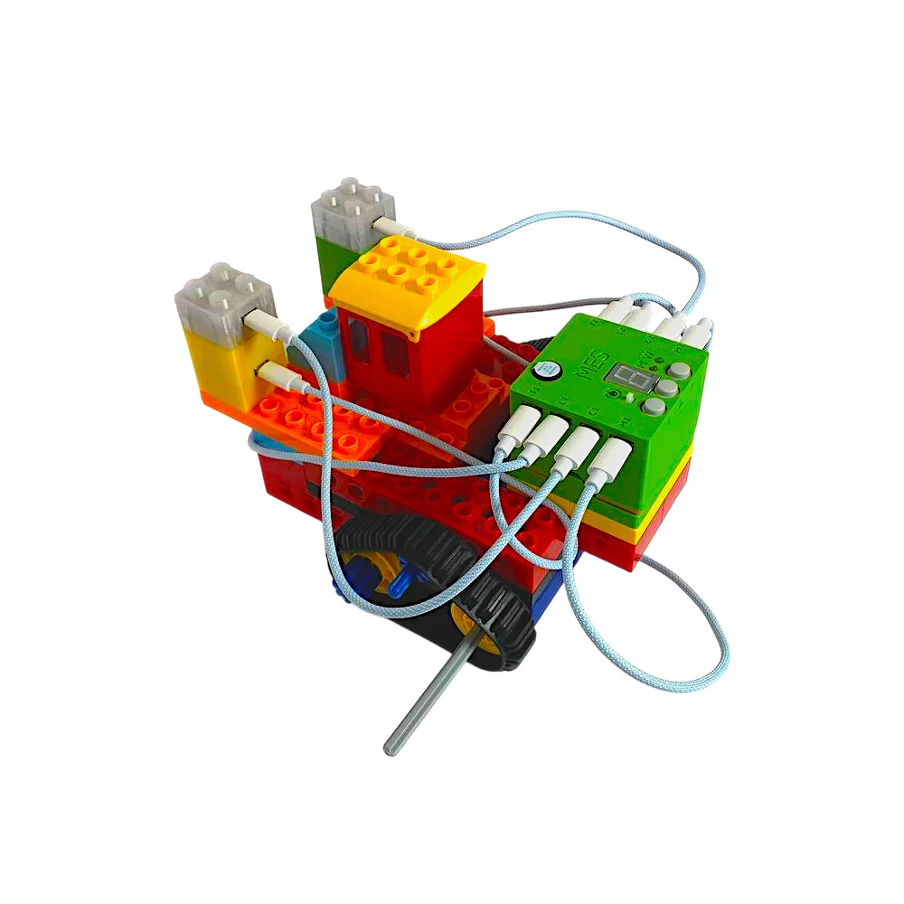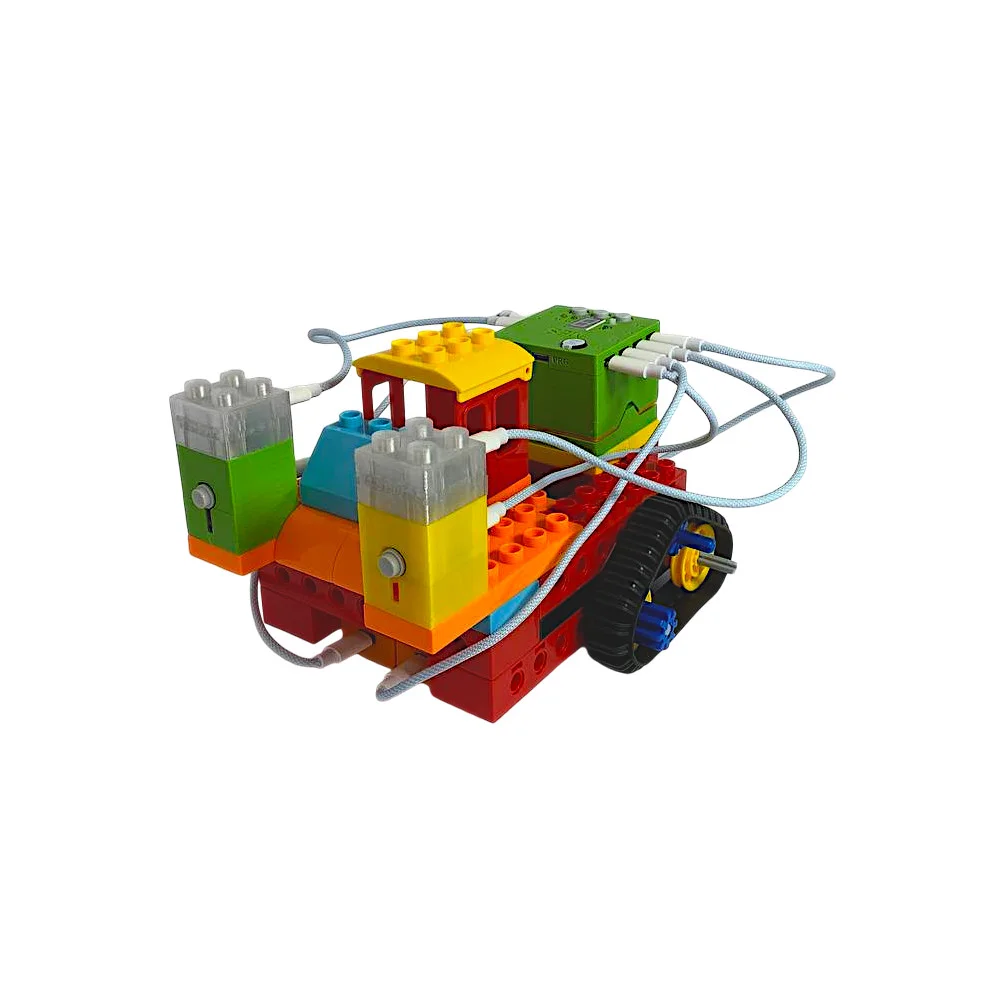 | Комплектация | Пластик, контроллер, программатор, пульт, электронные модули, двигатели, кубики |