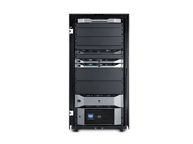 Готовое конвергентное решение для построения виртуальной инфраструктуры и частных облаков на базе Dell PowerEdge R620 1U, начальная конфигурация: 2 виртуальных сервера ESXi, 32 ядра Intel Xeon E5-2600, 128 ГБ памяти, две сетевые платы для резервирования и высокой доступности