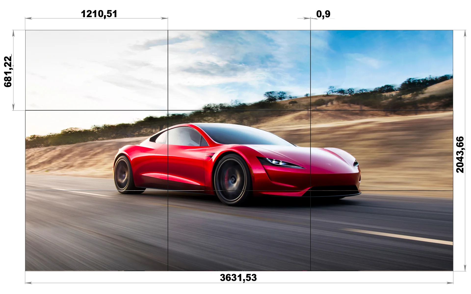 - Размер видеостены — 3631,53 × 2043,66 мм