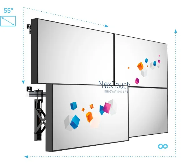 Видеостена NexTouch NextPanel55W088 с диагональю 110" представляет собой систему объединенных видеоустройств, формирующих единый экран с поддержкой многооконного режима для отображения больших объёмов информации из разных источников.